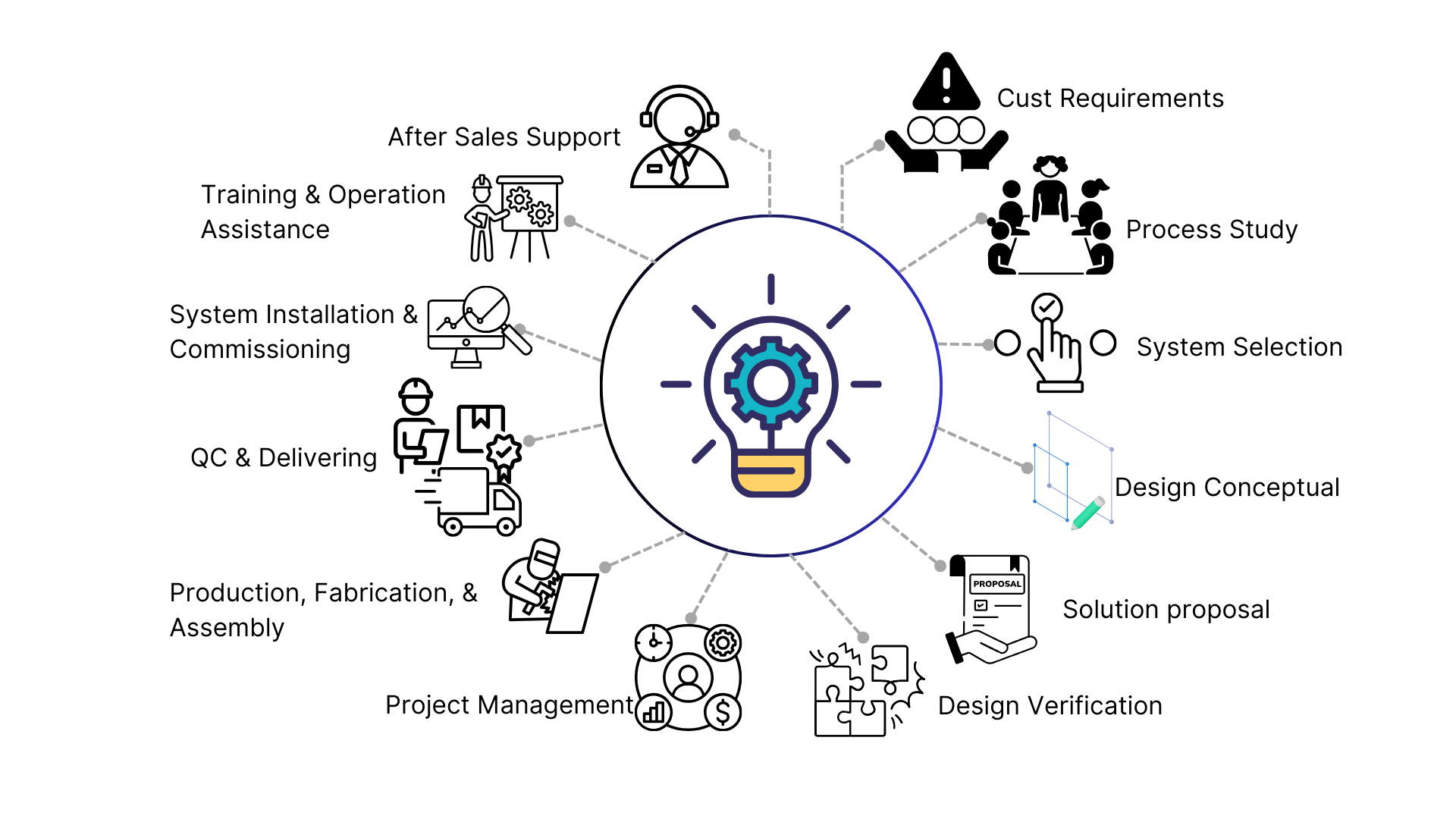 Comprehensive project workflow covering every stage from customer requirements to after-sales support ensuring reliable, efficient, and highquality solutions.
